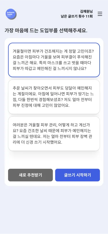 선택한 도입부에 맞춰 글 초안을 제안드려요