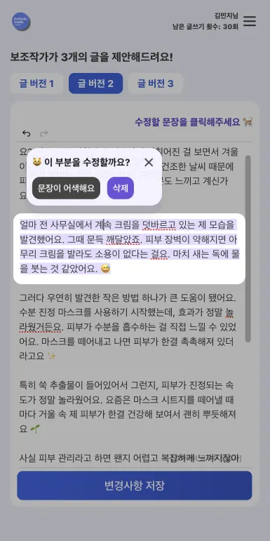 수정하고 싶은 부분만 AI를 활용해 다듬어보세요