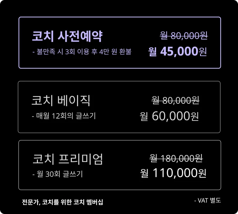코치멤버십은 전문가와 코치를 위한 상품입니다